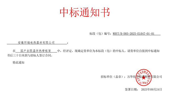 安徽環瑞成功中標萬華化學“自限溫伴熱帶框架”項目